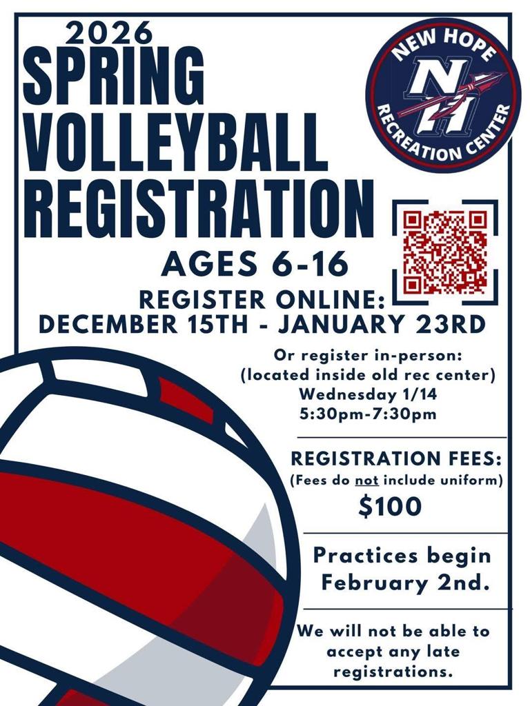 2026 SPRING VOLLEYBALL, BASEBALL, & SOFTBALL REGISTRATION IS NOW OPEN. PLEASE GO TO THE REGISTRATION TAB TO REGISTER YOUR CHILD OR SEE THE FLYERS BELOW FOR MORE INFORMATION AS WELL AS IN-PERSON REGISTRATION DATES/TIMES.